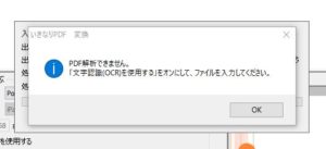 文字認識(OCR)を使用するにチェックを入れないと、変換が完了しません。