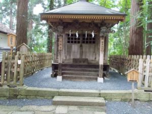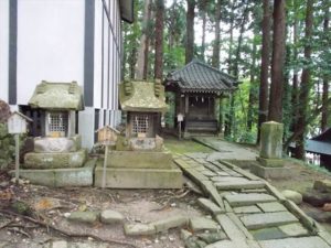 湯殿山神社は、本殿へ向かう石段の途中にあります。